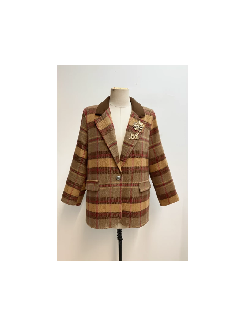 - Détails : Coupe oversize - Col revers - Motifs carreaux - 2 fausses poches avant - 2 broches au niveau du col