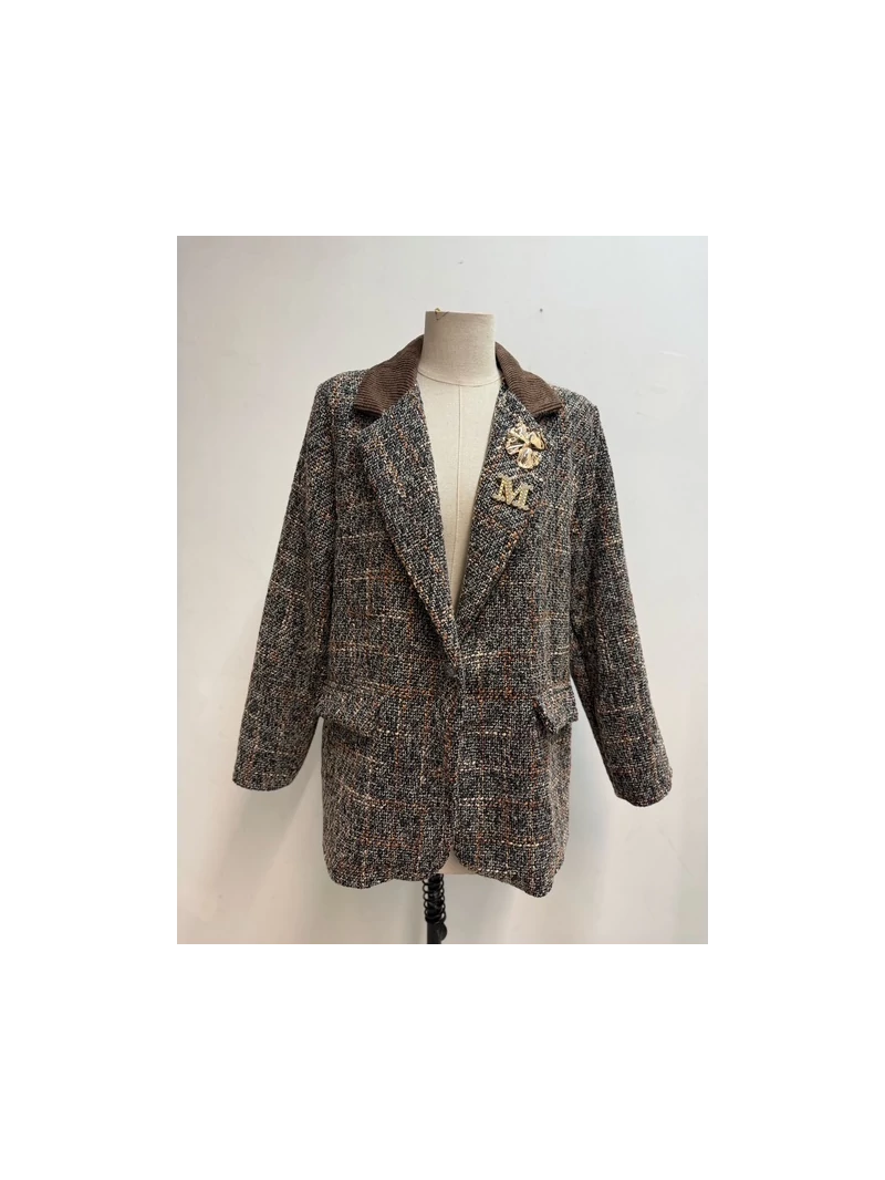 - Détails : Coupe oversize - Col revers en velours côtelé - Effet tweed - 2 fausses poches avant - 2 broches au niveau du col -