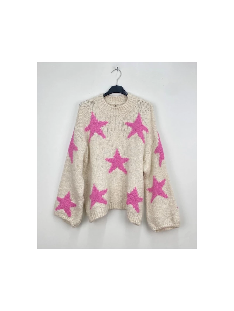 Pull étoile beige rose coupe loose;