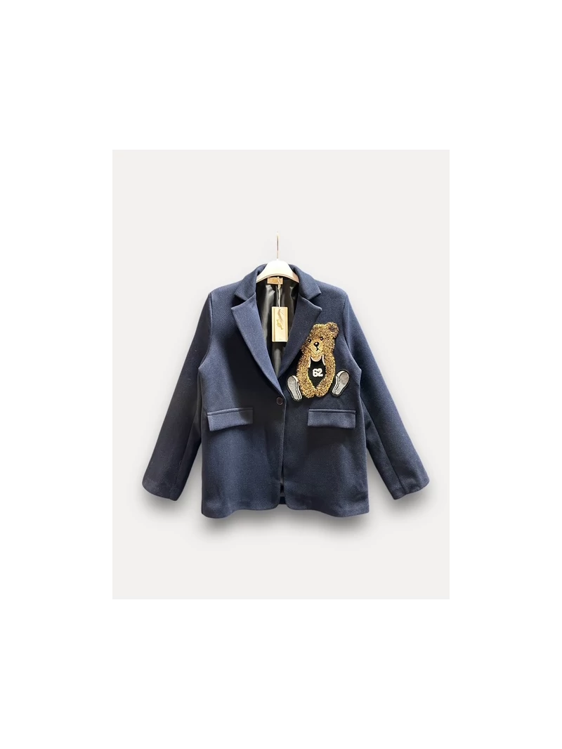 - Détails : Coupe blazer droit - Petites épaulettes - Bouton - Col revers - Nounours brodé