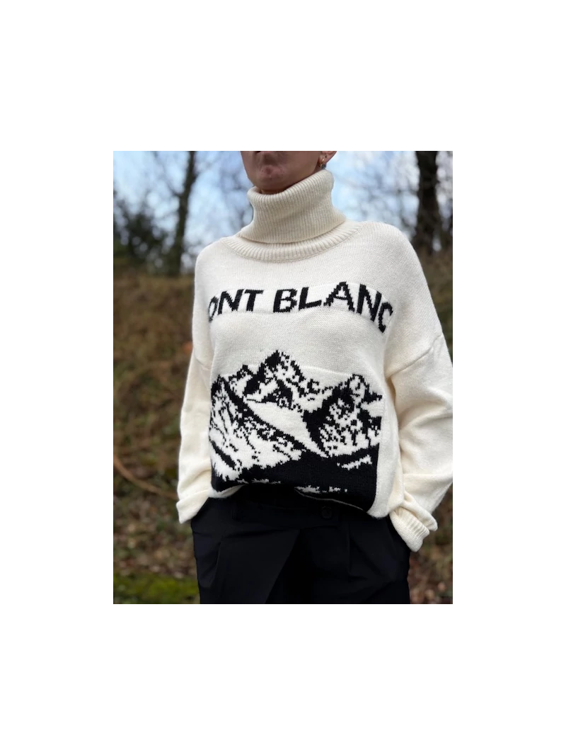 - Détails : Manches longues - Coupe large - Très doux - Col roulé - Motifs montagne "MONT BLANC"