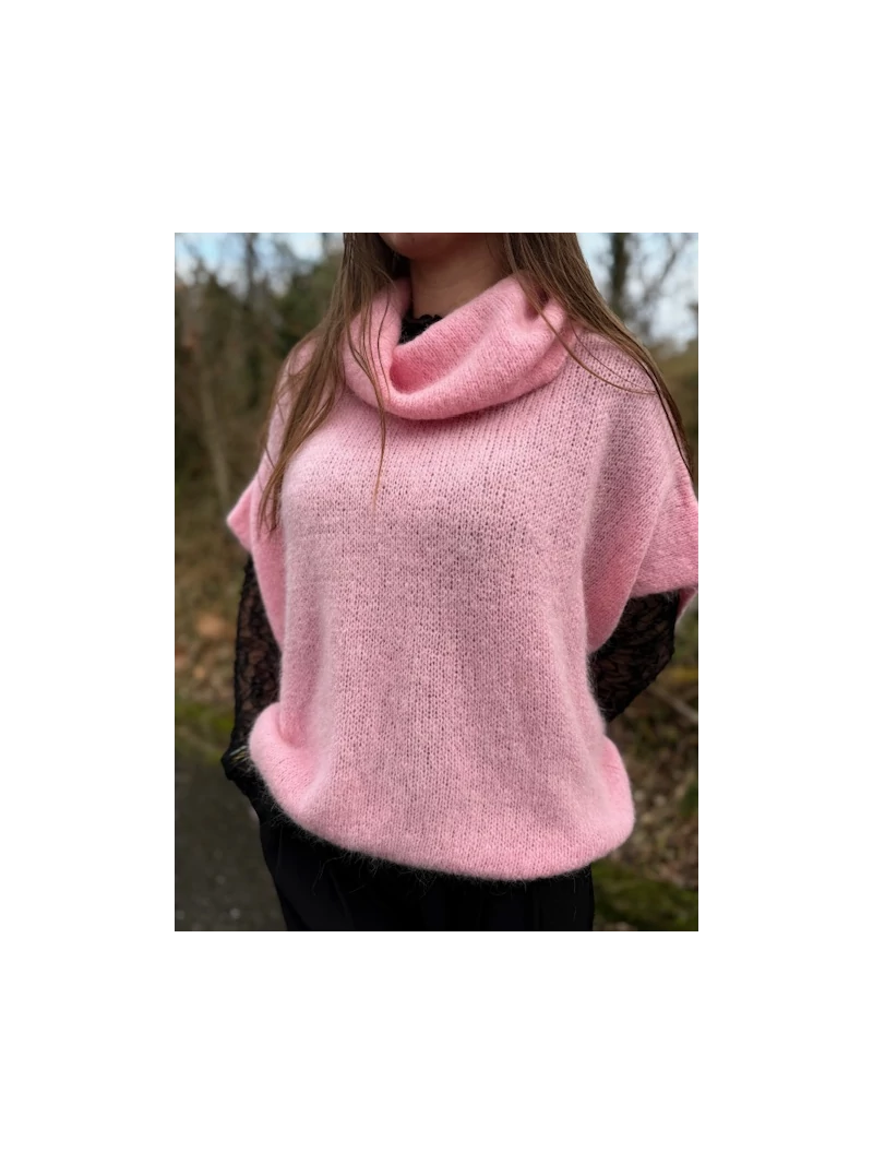 GINETTE Pull col roulé sans manches rose