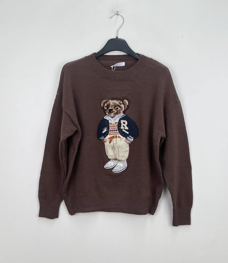 Ce pull en maille au motif ourson stylé est un véritable concentré de douceur et de cool attitude. Avec son look preppy et son design travaillé, il mixe parfaitement esprit régressif et tendance casual chic. Confortable et visuellement fort, c’est le genre de pièce qui twiste instantanément une tenue basique. On l’aime pour son motif plein de caractère, sa coupe moderne et son effet doudou irrésistible.