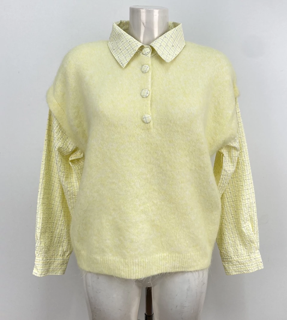 Pull à la maille toute douce, relevé d’un col et de manches effet chemise rayées, qui apportera du contraste à vos looks !