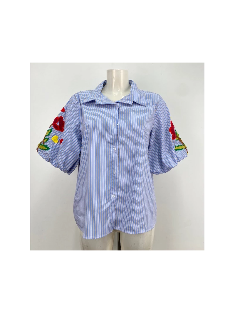 - Détails : Col revers - Rayée - Broderies fleuries - Coupe oversize - Boutonnée - Manches ballons