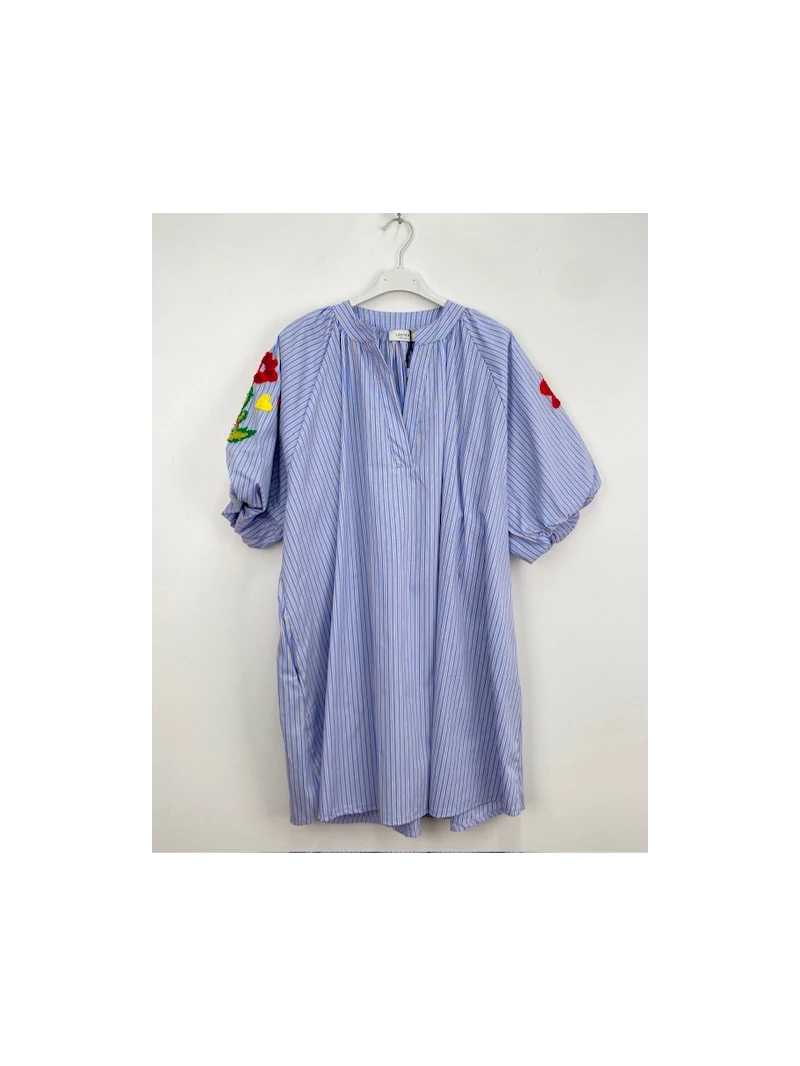 - Détails : Col revers - Rayée - Broderies fleuries - Coupe oversize - Manches ballons